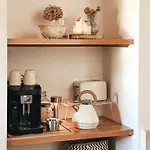 Alguns dos quartos à prova de som estão equipados com lareira de pedra, e opções de auto-atendimento como microondas e máquinas de café/chá. As unidade também apresentam refrigerador, utensílios de cozinha e artigos de vidro. Proporcionando bidé, as casas de banho estão equipadas com pantufas.